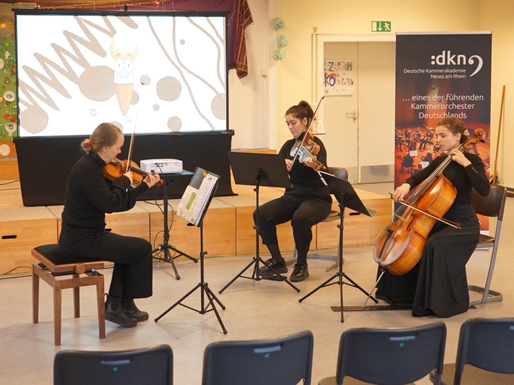 Mit Unterstützung der Werhahn Stiftung haben wir ein neues Education-Programm für Grundschulen entwickelt: „Die magische Welt der Streichinstrumente: Klangabenteuer mit Geige, Cello & Co“. Erste Aufführungen gab es im Dezember in der Pestalozzi-Schule und der St. Martinus Schule Neuss.